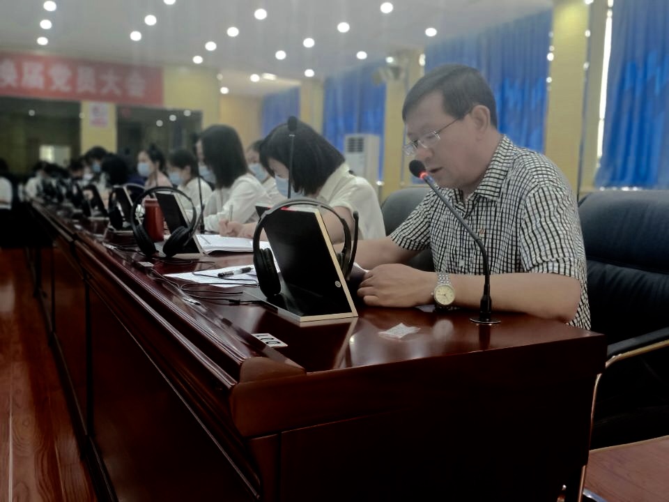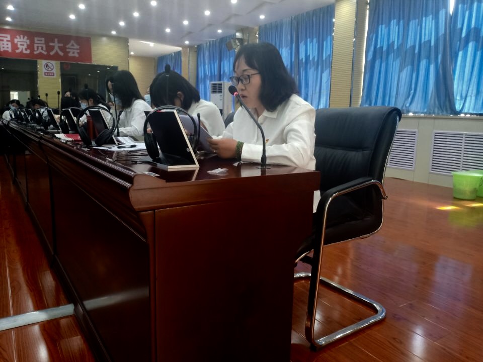 6月18日下午,在文科楼425同传室,外国语学院党总支换届选举大会在嘹亮的国歌声中拉开序幕。教工党员和学生党员共60余人,着正装佩戴党员徽章参加了大会。