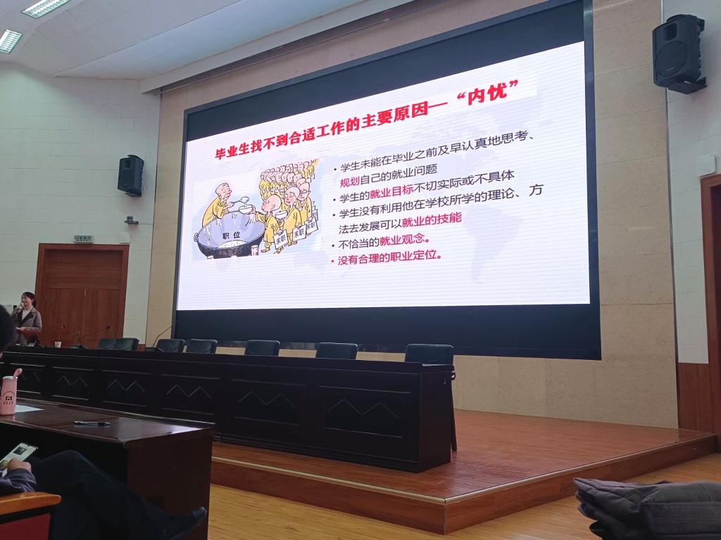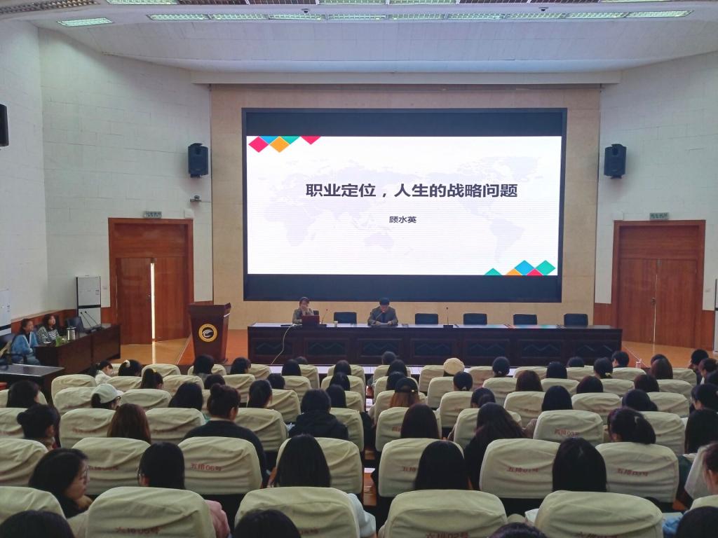 11月16日下午,外国语学院特邀BCC国际生涯教练,高考志愿高级规划师(AUP),高校生涯课程导师,省级创业导师,国家一级职业指导师顾水英老师在2号报告厅作了题为“职业定位,人生的战略问题”的职业生涯规划辅导报告,外语学院领导班子部分成员、辅导员、班主任及2018、2019级本科生现场聆听此次报告。