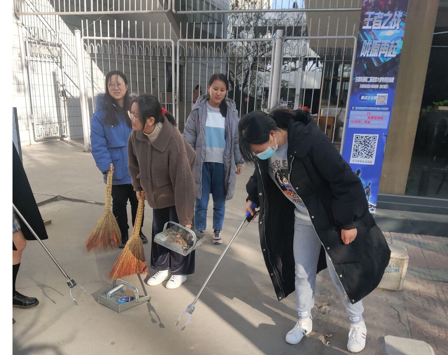 为引导同学们养成讲卫生、爱劳动的好习惯,树立主人翁意识,爱护校园环境,珍惜大学时光,创建文明和谐校园,12月11日,外国语学院组织学生志愿者借来笤帚、簸箕等卫生工具,主要针对5号学生公寓周边进行了认真细致的打扫。大扫除过程中同学们协调配合,以极高的效率完成了此次任务,既锻炼了身体,也提升了校园卫生环境。