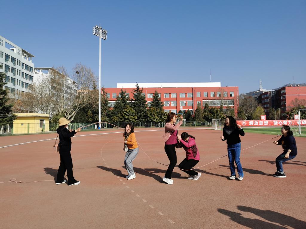 本次活动以“巾帼聚力、绳采飞扬”为主题,加强了女教职工之间的交流,不但锻炼了身体,调节了身心,还增进了友谊和女教职工的凝聚力,既温馨又愉快!我们将提升精神,以更加饱满的精神状态和更昂扬的斗志投入到教学工作中去!