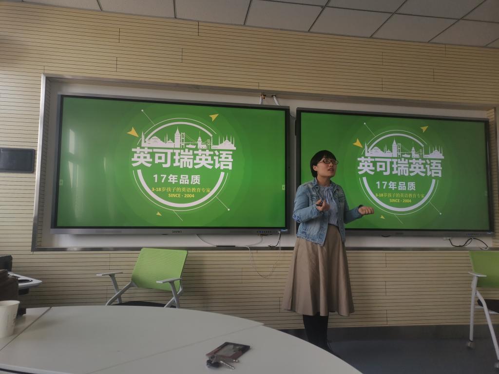 张老师详细说明了英可瑞教师的发展道路,进入英可瑞学校的老师不仅可以选择教师这一岗位,还可以成为学校管理者和企业培训师,学校会就个人的特点为新入职的毕业生安排适当的岗位,以促进每个人的个性发展。张老师也介绍了英可瑞英语学校较为完善的福利体系,包括三年一次的出国深造机会、五险一金、带薪假期、生日福利和节日福利等。