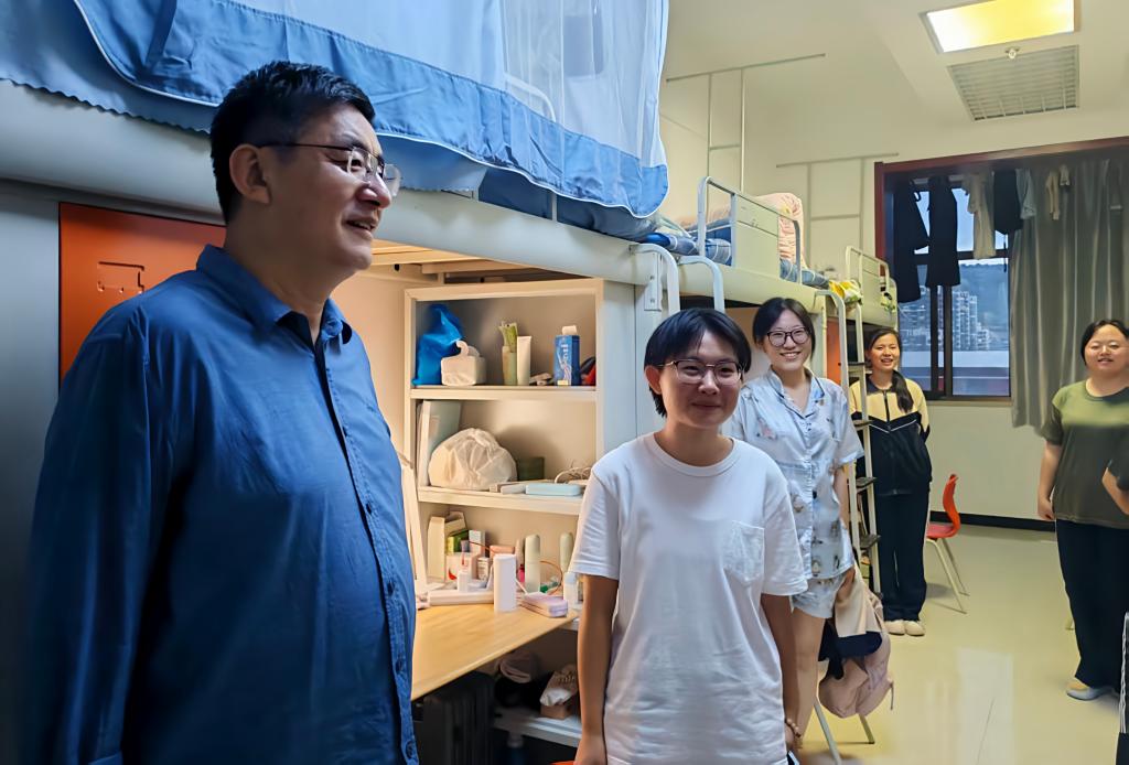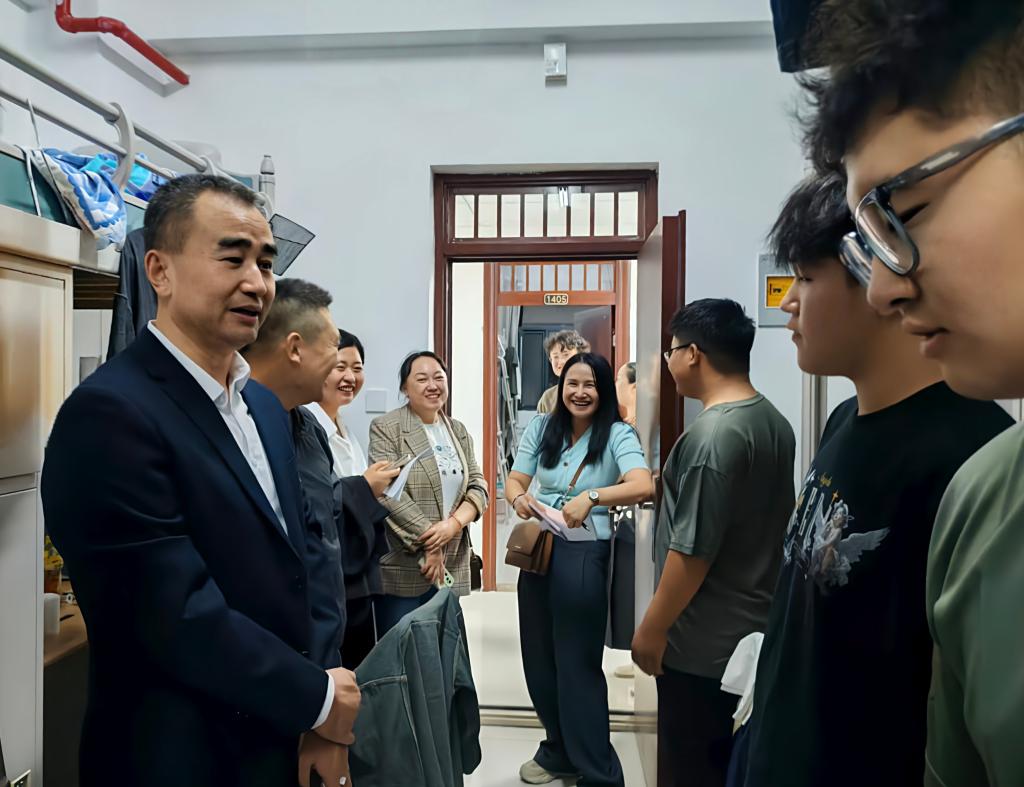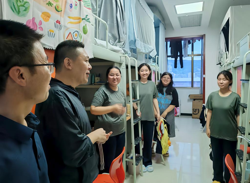 金秋九月,丹桂飘香,外国语学院迎来2025级新同学。为全面了解新生入学后的生活状况,着力营造安全、和谐、温馨的宿舍环境,外国语学院组建由学院领导、辅导员及全体新生班主任构成的迎新工作小组,深入2025级新生宿舍,开展了一次细致入微的走访活动,向初入校园的新生表达关怀。